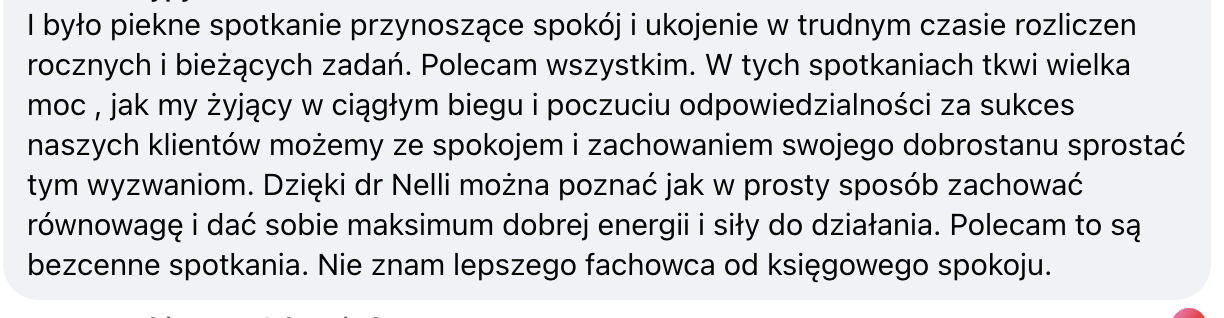 Dziękuję Pani. Tego potrzebowałam. Nie zdawałam sobie sprawy jak bardzo jestem przeciążona i spięta.